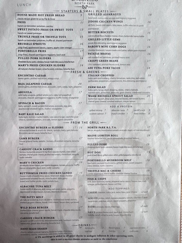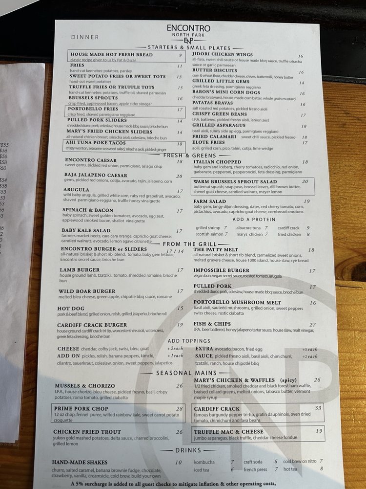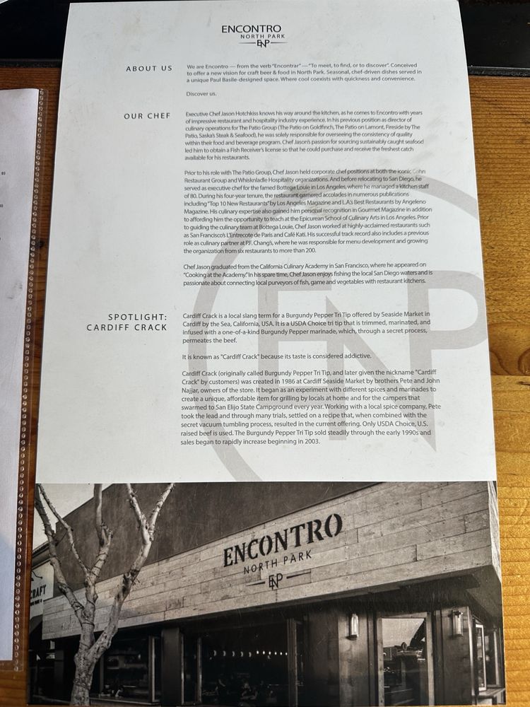 Encontro North Park, located in San Diego, is a trendy and casual restaurant offering a variety of options such as vegan dishes, limited vegetarian options, and an array of delicious food and drink choices. With a welcoming atmosphere and friendly staff, Encontro North Park is praised for its excellent service and top-notch food quality. Customers have raved about standout dishes like the Jadori wings, Mary's friend chicken sliders, and the bomb AHI Tuna salad. Although the menu is slightly limited in gluten-free options, patrons appreciate the accommodating staff who are willing to assist with allergen concerns. Overall, Encontro North Park has garnered positive reviews for its flavorful dishes, welcoming ambiance, and attentive service, making it a must-visit dining spot in the area.